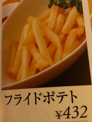 オーソドックスなフライドポテト。塩の振り方に多少のむらがあり。