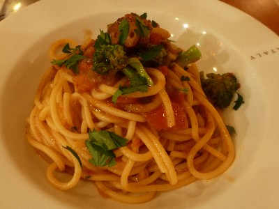 トマトソース。生ハムの色と厚さでちょっと期待薄だったけど、食べてみたら美味しかった。