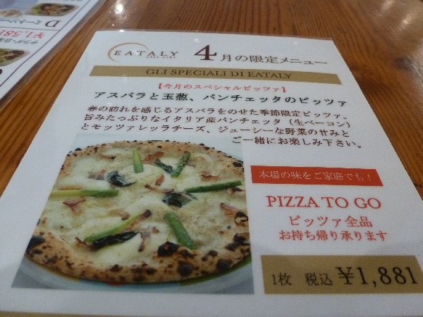 アスパラ、玉葱、パンチェッタのピザ 1,881円