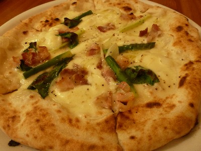 でも、野菜からの水分なのか、パンチェッタとかチーズの脂なのか・・・生地がシナっとしてた。