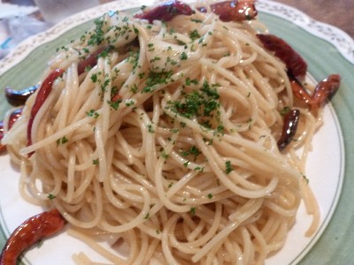 『青唐辛子のスパゲッティ』もあるけれど、赤より辛いということでいつも躊躇するらしい。