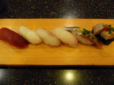 天然本鮪赤身・生白いか・天然すずき・天然ひらめ・生さんま・赤貝ひも軍艦