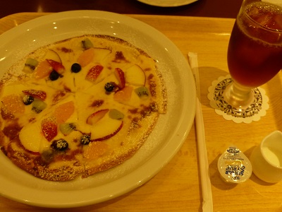 フルーツピッツァにコーヒーor紅茶が 付くと言うので、友の会優待は1杯分のみ行使。