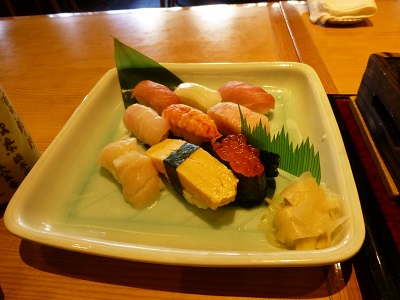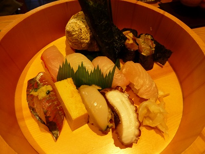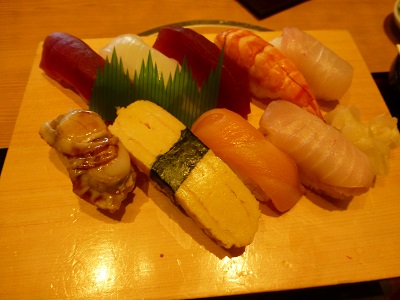 まぐろ2貫、いか、えび、地魚3貫(名前が分からないけど白身だったみたい)玉子、煮帆立。