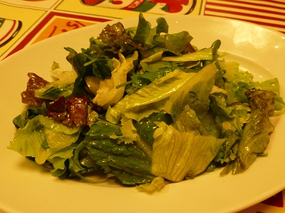 ホントに葉物野菜のみのシンプルなサラダ。イタリアンドレッシングかな。
