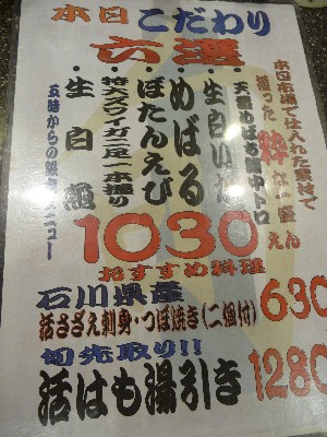 もう「うに・かに」でほぼ決まり、まはたが白身だというので注文決定。