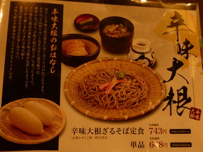 母さんは辛味大根ざるそば定食(743円)山菜かやくご飯・野沢菜付