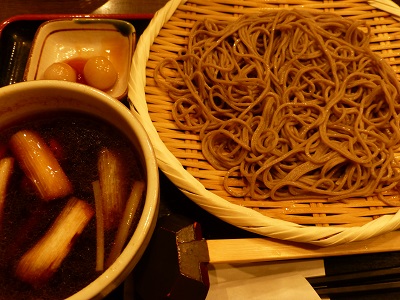 せいろそばに合鴨肉とねぎが入った温かいつゆ、みたらし団子付。