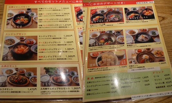 プルコギセットとかサムギョプサルを使ったメニューがいつの間にか増えてた。