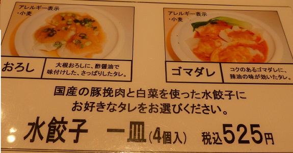 【水餃子】 4個入 525円