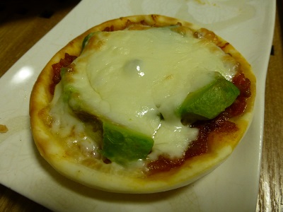 ①ピザソースやケチャップを塗って、好みの材料、とろけるチーズの順にのせる。