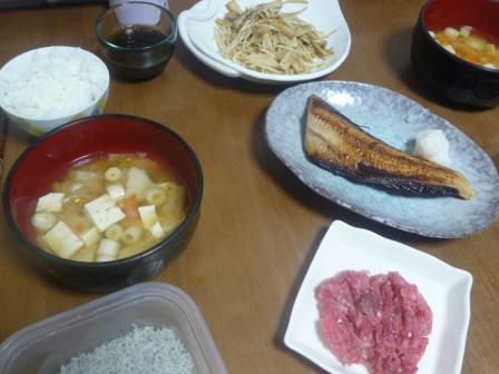 最近は芋の貯蔵量が多いらしく、里芋を使うために具だくさんのみそ汁。