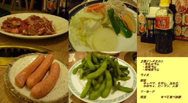 3種ラム:840kcal (手もみラム・味噌漬ラム・塩漬ラム、ジンギスカンのたれ)