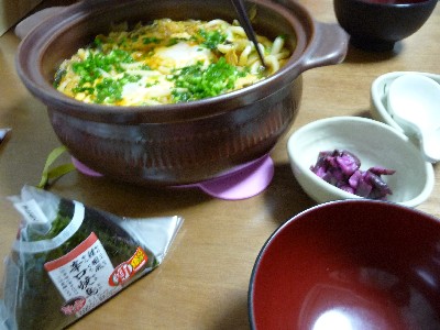 キムチうどん:681kcal (キムチ鍋、玉うどん、油揚げ、たまご、小ねぎ)