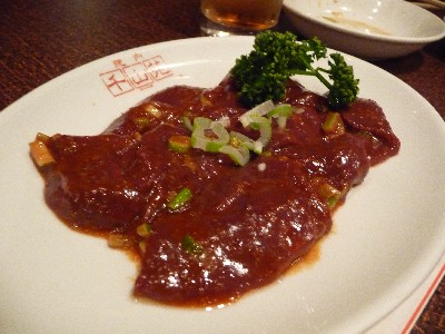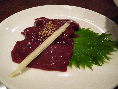 レバ刺し 今日はサービス品のレバ刺し。やっぱり盛りが少ないなぁ。