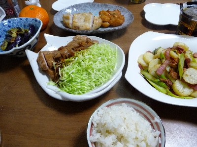 ジャーマンポテト:196kcal (じゃがいも、ソーセージ、ベーコン、アスパラ)