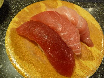 大トロ、中トロ、赤身の脂のノリ具合が比べられていい感じ。