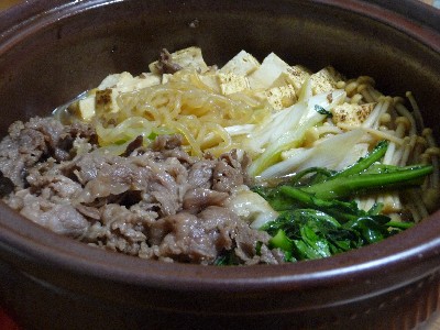 すき焼き:770kcal (牛ロース霜降り、焼豆腐、白滝、長ねぎ、春菊、えのき、割り下、玉子)
