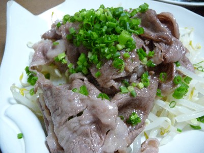 牛肉の焼しゃぶ風:377kcal(牛ロース霜降り、もやし、大根おろし、ポン酢、小ねぎ)
