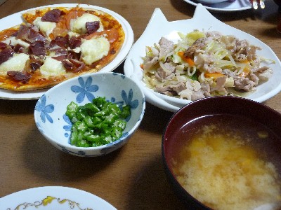 野菜炒め:261kcal(豚肉、キャベツ、もやし、人参、ピーマン、玉ねぎ、調味料...)
