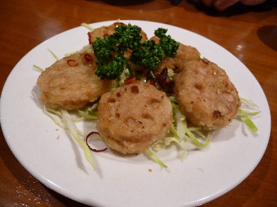 レンコンの食感はもちろん、挟んである海老のプリプリ感と旨みがよいです。