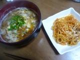 昨日のひるごはんのそうめんとつけ汁を小鍋で煮込んで温め、