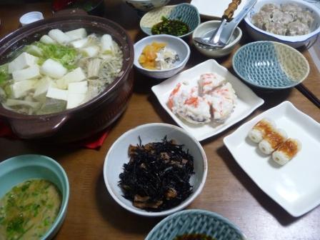 おみやげのシュウマイとちくわ(ちっちゃいw)とお惣菜のひじきが並びました。