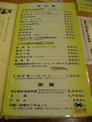 「天重があるよ?」と勧めると、「そばひとつずつ頼んで、天重頼んで半分ずつ食べるか?」と。