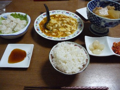麻婆豆腐:288kcal(絹ごし豆腐、ねぎ、生姜、にんにく、麻婆豆腐の素、ごま油)