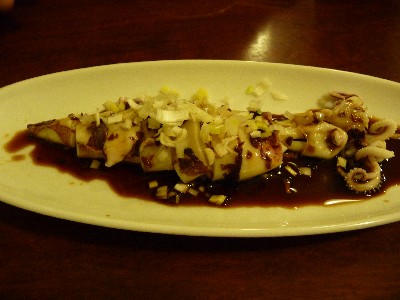 冷製。蒸したヤリイカに長ねぎのみじん切りとソース。