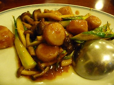 大きなホタテの貝柱とアスパラ、しめじとシンプルな具材。
