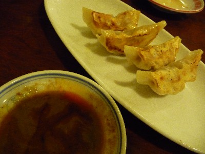 辛みが強めのタレの翡翠餃子。今日は胡麻風味が少なめだった。