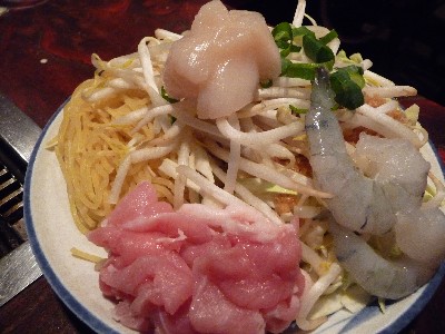 いつもよりゴージャスな焼きそば。えびもほたてもゴロゴロと。