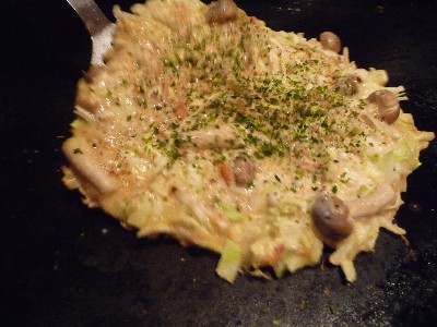 最初はもんじゃのつもりだったけど、お好み焼きに変更。