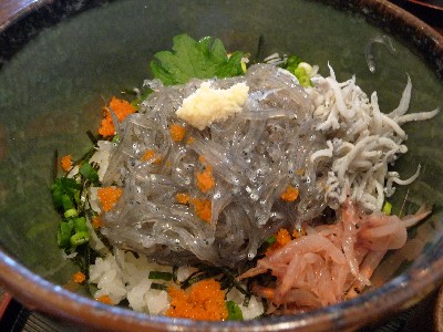 生臭さもなく、しらすの甘みと酸味のあるタレがよく合う。
