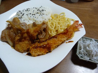 フライ:130kcal (エビフライ、イカフライ1/3、ソース)