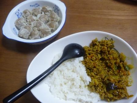 残っていたシュウマイを添えて・・・今日はひき肉づくしだったなぁ(笑)