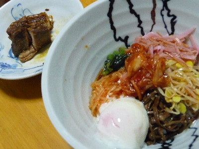 冷麺:596kcal (冷麺、ナムル、ハム、温泉卵)