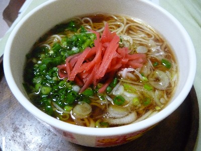 (はろぃきてぃ 福岡限定 しょうゆとんこつラーメン、紅しょうが、長ねぎ、小ねぎ)