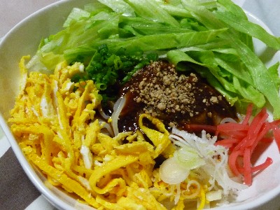 じゃじゃ麺:494kcal (いわて盛岡じゃじゃ麺、レタス、錦糸卵、紅しょうが、長ねぎ)