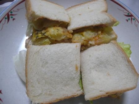 昨日の夜のスペインオムレツを軽くトーストしたパンで挟んだもの。