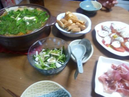 鍋だけでは寂しいので、カプレーゼ、生ハム。それに合わせてトースト。