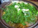 春菊とにらのおかげで緑々しい鍋になってるwww