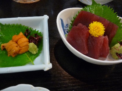 刺身盛り合わせ:206kcal (まぐろ、とり貝、かに爪、玉子焼き)