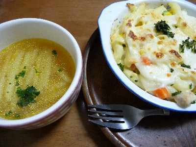 (マカロニ、ホワイトソース、鶏肉、玉ねぎ、ミックスベジタブル、パルメザンチーズ、マーガリン)
