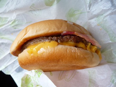 ジューシーな2枚のビーフパティにまろやかでクリーミーなチーズ、そしてオニオンとピクルスをアクセントに、スモーキーな香りのベーコンを加えた一品です。ケチャップとマスタードというシンプルな味付けでありながら、2枚のビーフパティとベーコンが絶妙なハーモニーをつくりだし、ボリューム感もたっぷりな仕上がりとなっています。