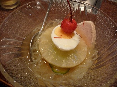 パイナップルにゆで卵さくらんぼは爪楊枝で止めてあった。