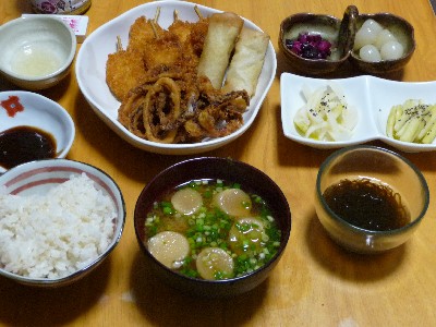 (そうめん、めんつゆ、揚げ玉、小ねぎ)