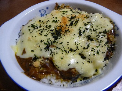 焼きカレー:710kcal(ごはん、ひき肉となすのカレー、チーズ2枚、パルメザンチーズ、パセリ)