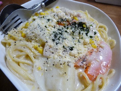 クリームシチューパスタ:842kcal(スパゲティ、クリームシチュー、パルメザンチーズ)